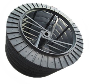 3、形成不了平面渦流:現(xiàn)行渦輪分級機(jī)的渦輪僅是一個簡單的直籠形轉(zhuǎn)子,無水平隔板,分級葉片也是用扁鋼做成,從而使形成的旋轉(zhuǎn)氣流不是平面渦流,而是螺旋氣流,并且在籠子 上部吸進(jìn)氣體的流速較快,而下部吸進(jìn)的氣流速度要慢些,因而影響分級效率。